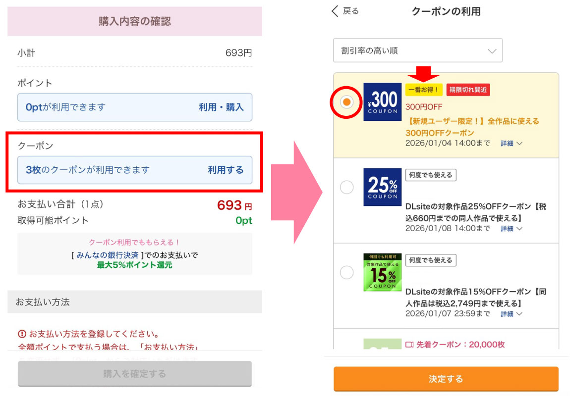 - DLsiteに無料登録して【300円OFFクーポン】ゲット