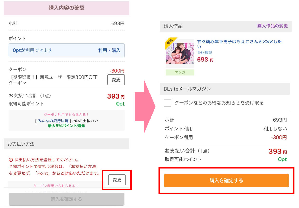 - 支払い方法を登録して購入確定する