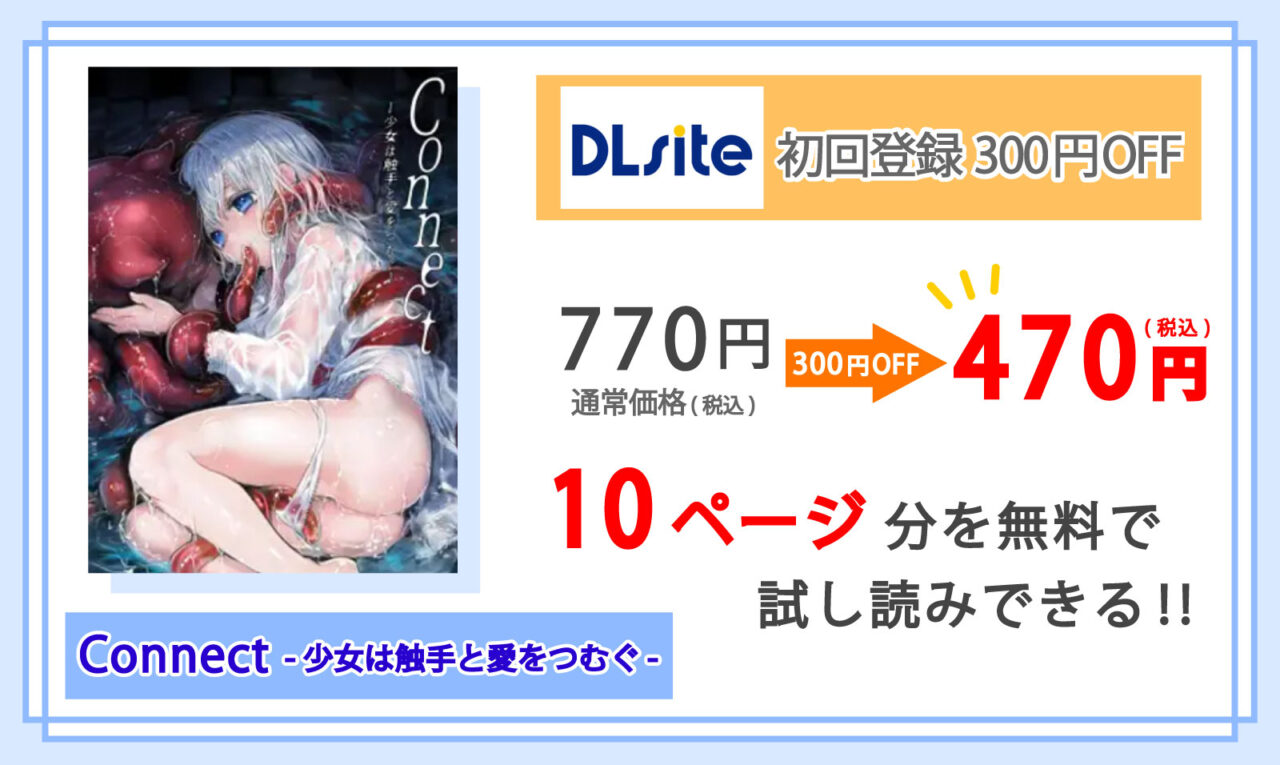 ちなみにマンガ『Connect-少女は触手と愛をつむぐ-前編』はDLsiteで、いまなら期間限定(2025/12/11まで)で30%OFF!!以下の価格で購入することができます。