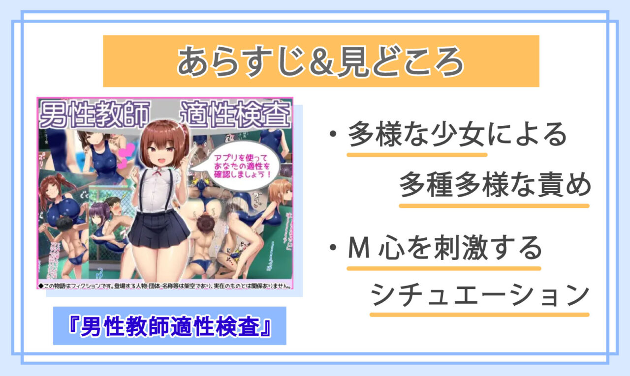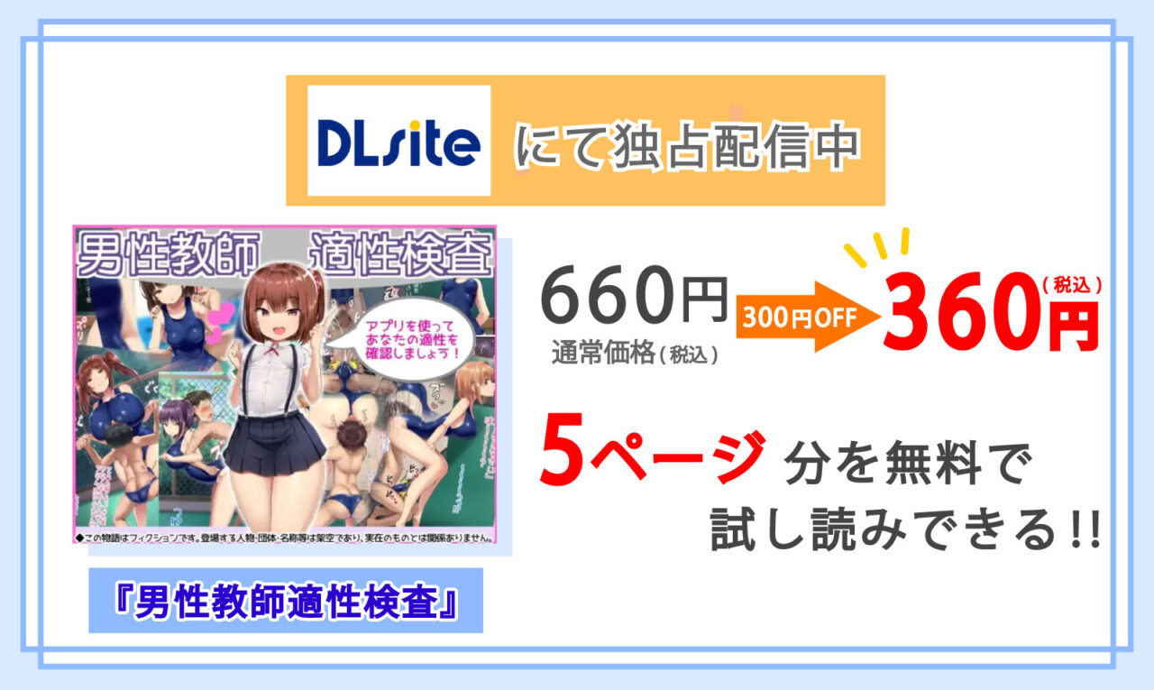 DLsiteでなら「男性教師適性検査」が独占配信中