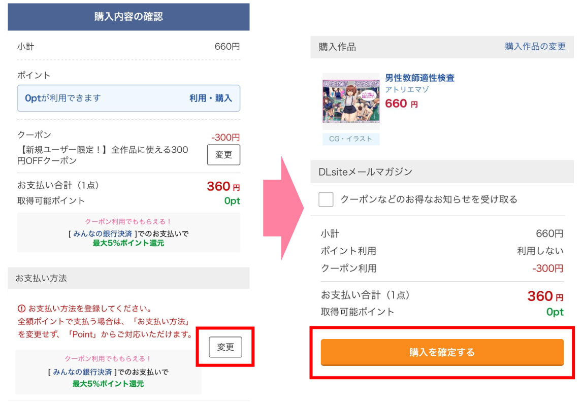 最後に【300円OFFクーポン】がきちんと適用されているかを確認して、購入を確定します。