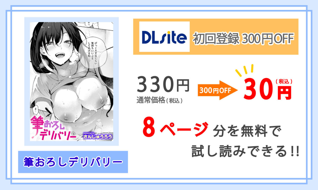 DLsiteでなら新規登録時にもらう300円OFFクーポン”を使うことで、マンガ『筆おろしデリバリー』が非常にお得に購入できます!