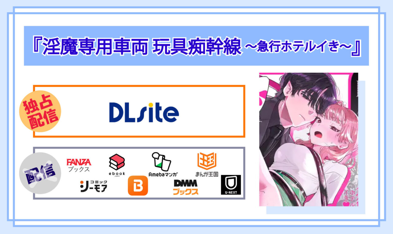 比較してみた結果、マンガ『淫魔専用車両 玩具痴幹線 ~急行ホテルイき~』の電子書籍は、「国内最大級の二次元総合ダウンロードショップ」であるDLsiteでしか配信されていないことが分かりました♪
