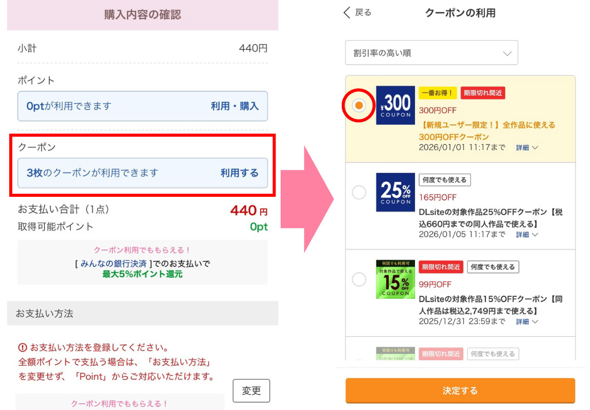 - DLsiteに無料登録して【300円OFFクーポン】ゲット