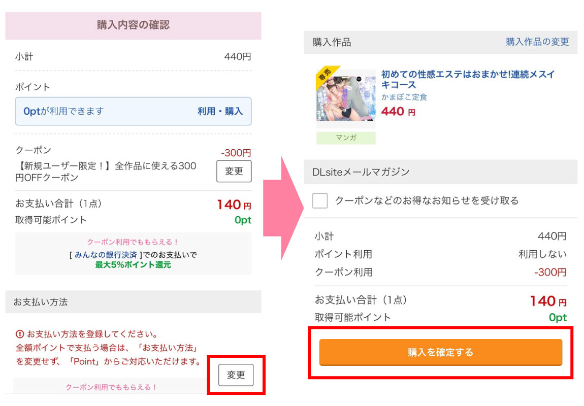 最後に【300円OFFクーポン】がきちんと適用されているかを確認して、購入を確定します。