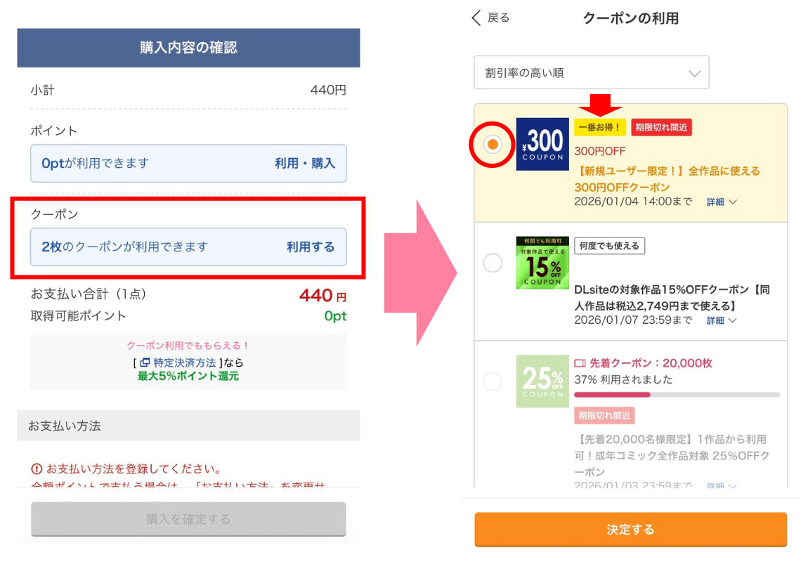 1. DLsiteに無料登録して【300円OFFクーポン】ゲット