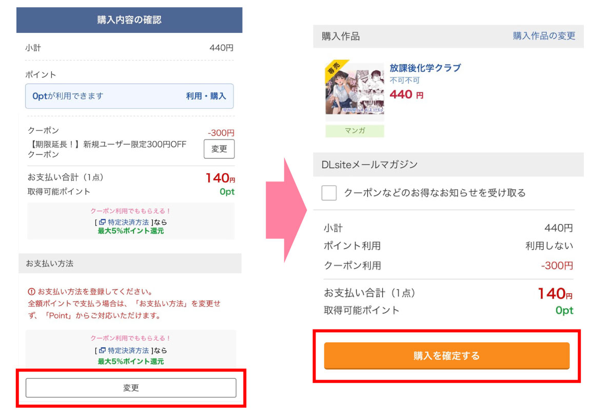 最後に【300円OFFクーポン】がきちんと適用されているかを確認して、購入を確定します。