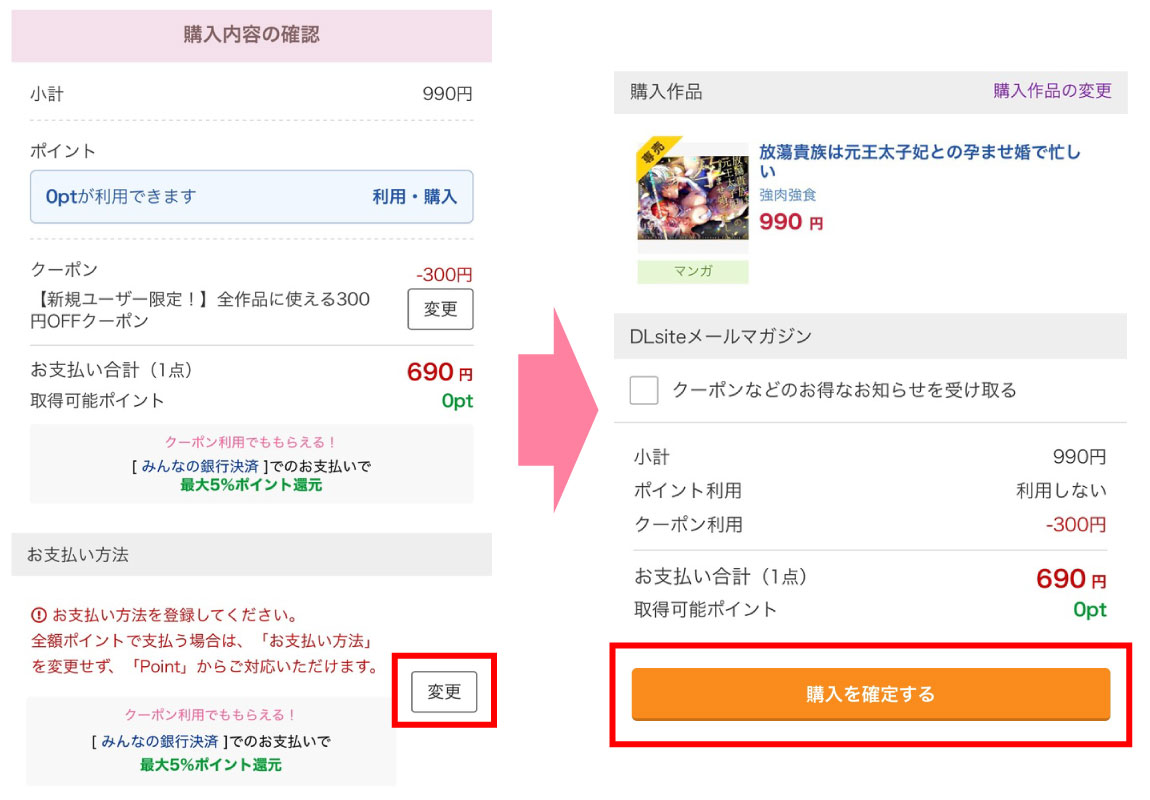 - 支払い方法を登録して購入確定する