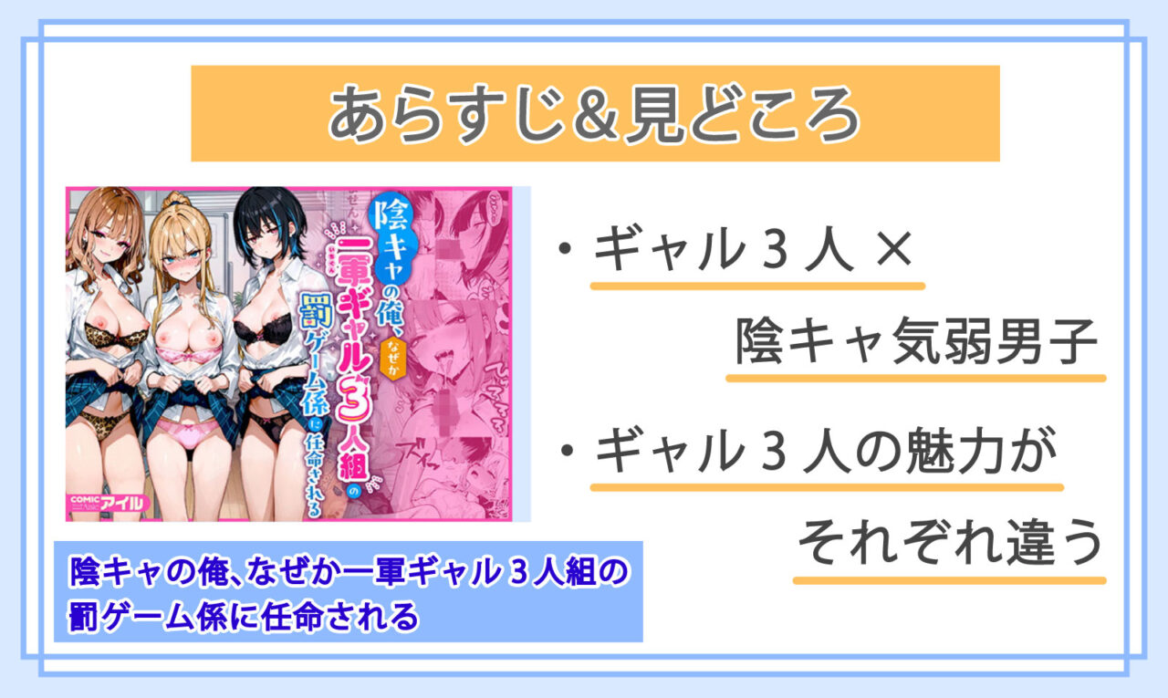 エロ漫画「陰キャの俺、なぜか一軍ギャル3人組の罰ゲーム係に任命される」あらすじ・見どころ・感想
