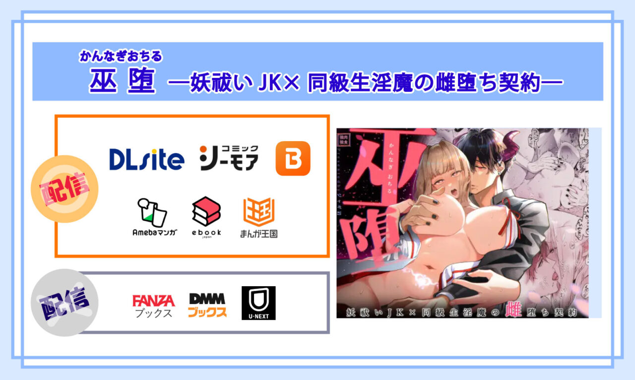 漫画「巫堕─妖祓いJK×同級生淫魔の雌堕ち契約─」はどこで読める?一番安く読める電子書籍サイトを厳選比較