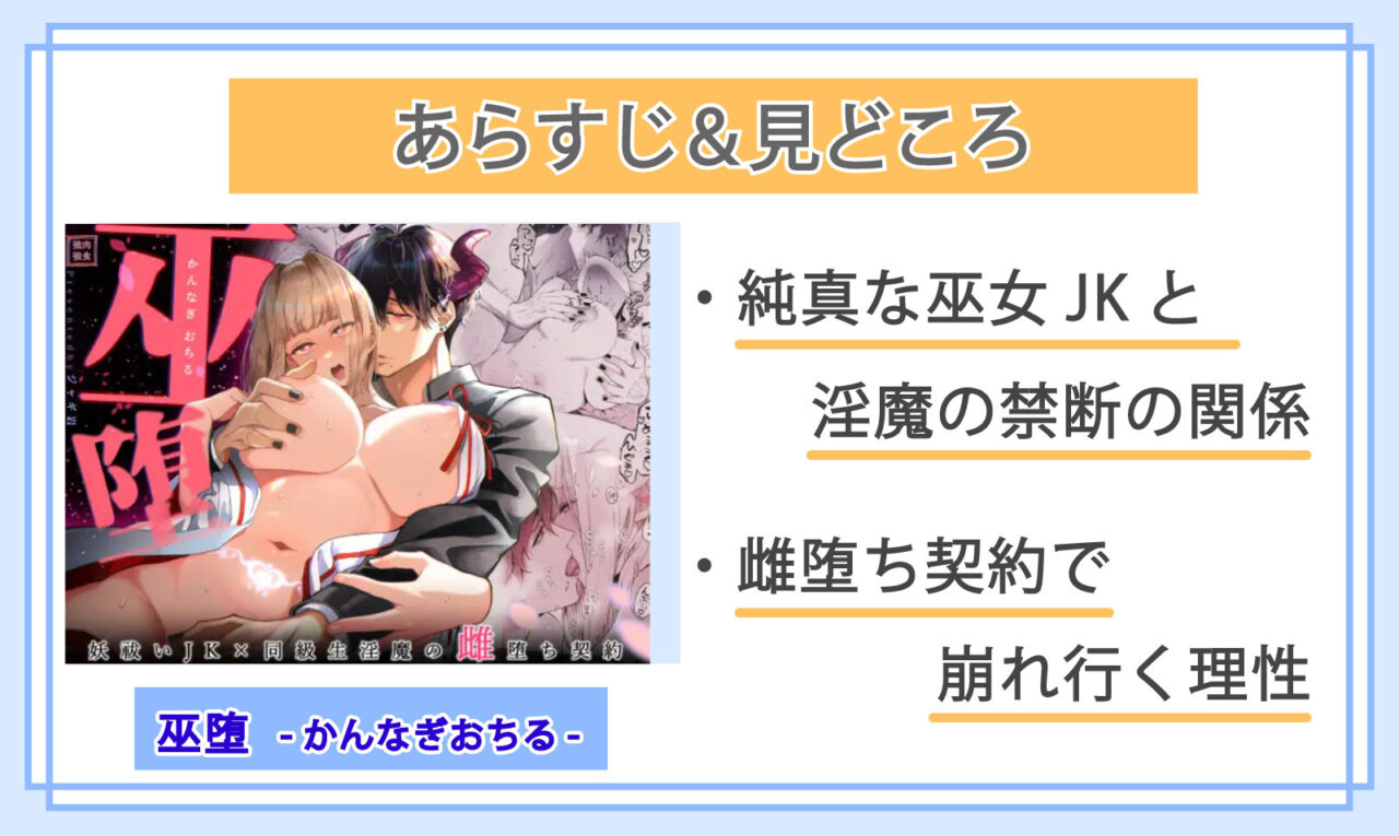 真面目で負けず嫌いな「巫(かんなぎ)」の跡取り娘が、淫魔の同級生に抱かれる契約を結ばされ、”雌”へと堕ちていく大人気TL漫画『巫堕 ─妖祓いJK×同級生淫魔の雌堕ち契約─』
