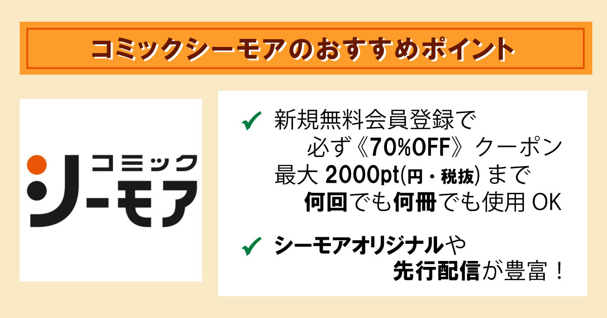 いまコミックシーモアで実施されている”新規登録キャンペーン”のうれしい目玉特典は《70%OFFクーポン(無料会員登録)》