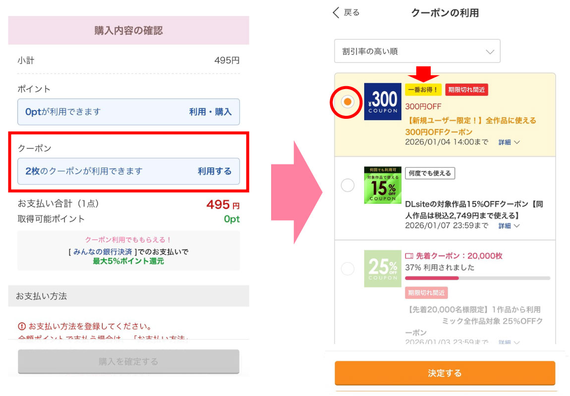 - DLsiteに無料登録して【300円OFFクーポン】ゲット