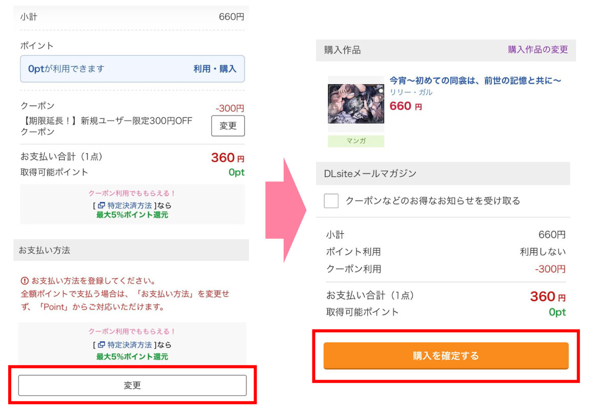 最後に【300円OFFクーポン】がきちんと適用されているかを確認して、購入を確定します。