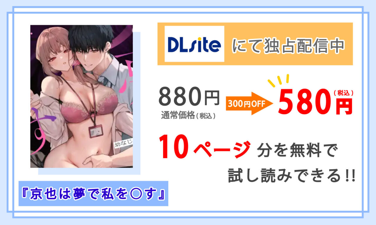 ちなみにマンガ『京也は夢で私を○す』はDLsiteで、いまなら期間限定(2026/02/12まで)で30%OFF!!以下の価格で購入することができます。