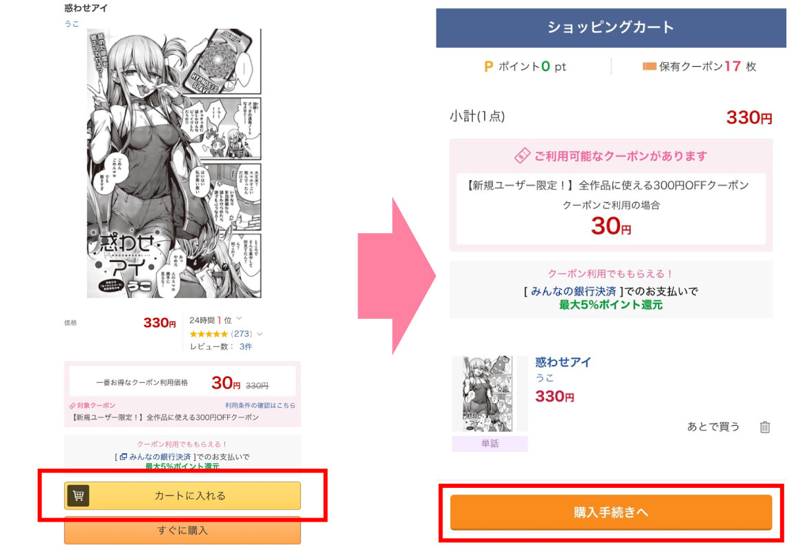 登録が完了しましたら、漫画『惑わせアイ』が購入できるようになります。