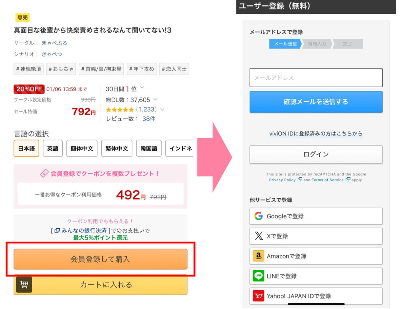 - DLsiteに無料登録して【300円OFFクーポン】ゲット