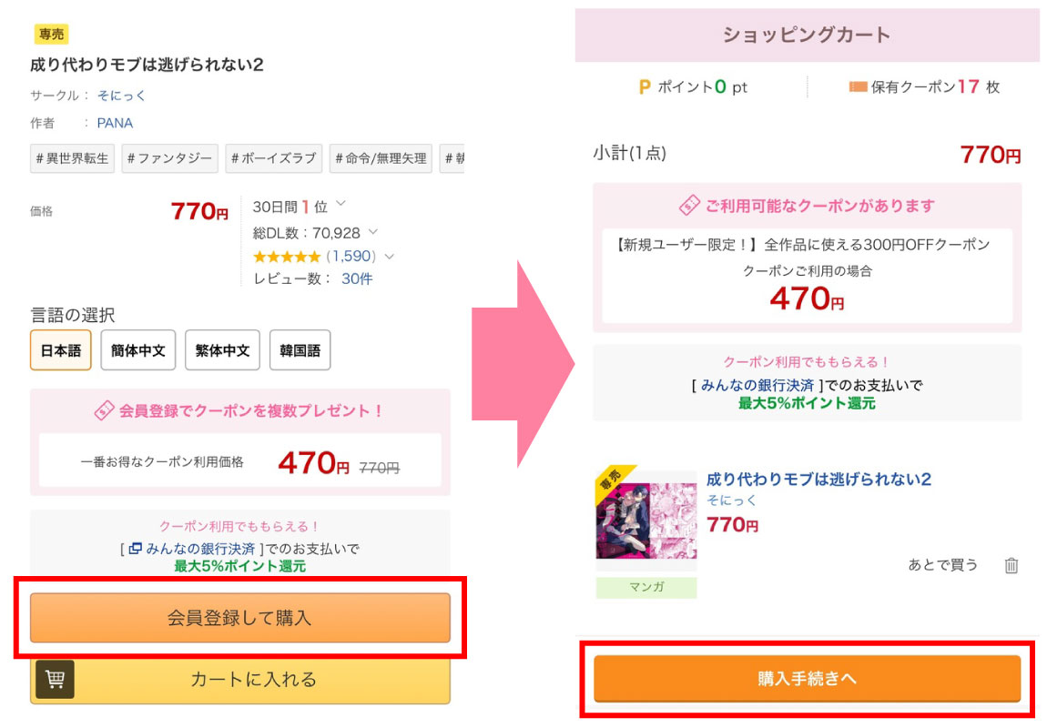 漫画「成り代わりモブは逃げられない2」をDLsiteでお得に購入する方法