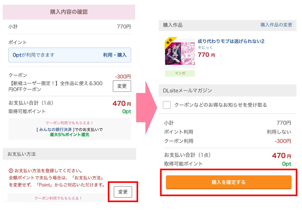 最後に【300円OFFクーポン】がきちんと適用されているかを確認して、購入を確定します。