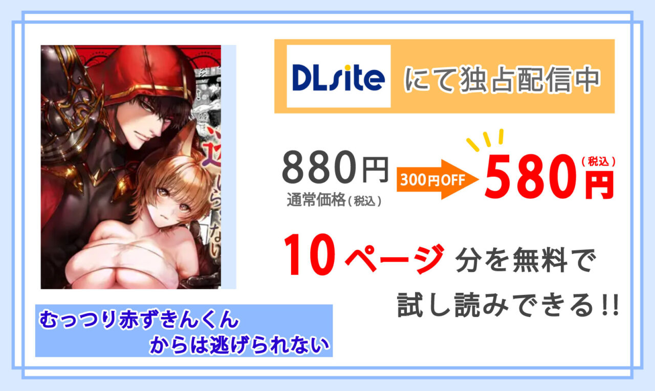 ちなみにマンガ『むっつり赤ずきんくんからは逃げられない』はDLsiteで、いまなら期間限定(2026/02/12まで)で50%OFF!!以下の価格で購入することができます。