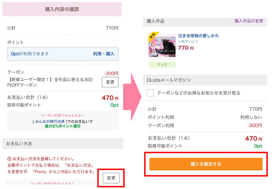 最後に【300円OFFクーポン】がきちんと適用されているかを確認して、購入を確定します。