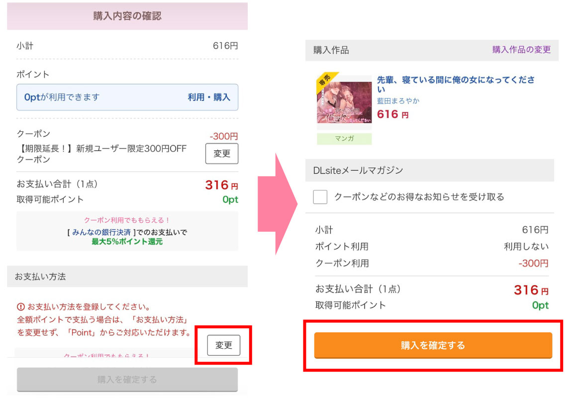支払い方法を登録して購入確定する