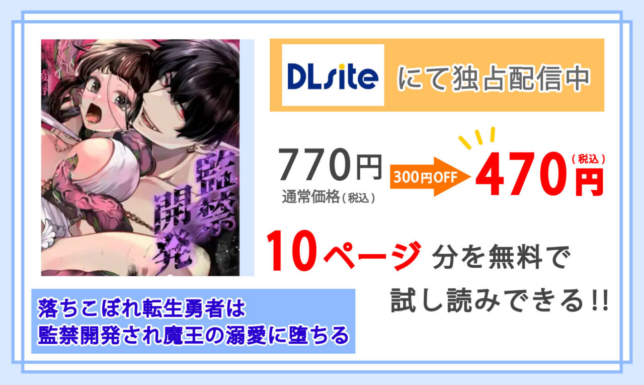 ちなみにマンガ『落ちこぼれ転生勇者は監禁開発され魔王の溺愛に堕ちる』はDLsiteで、いまなら期間限定(2026/02/12まで)で30%OFF!!以下の価格で購入することができます。