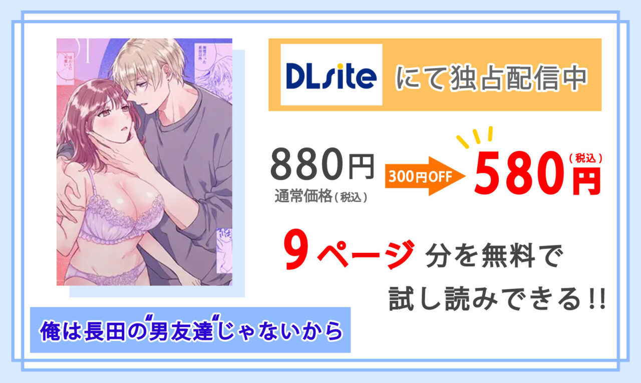 ちなみにマンガ『俺は長田の“男友達”じゃないから』はDLsiteで、いまなら期間限定(2026/02/12まで)で50%OFF!!以下の価格で購入することができます。