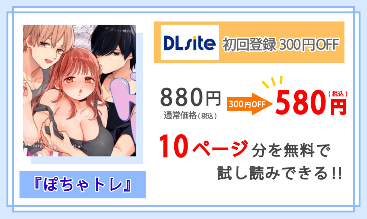 DLsiteでなら新規登録時にもらう”300円OFFクーポン”を使うことで、マンガ『ぽちゃトレ』が非常にお得に購入できます!