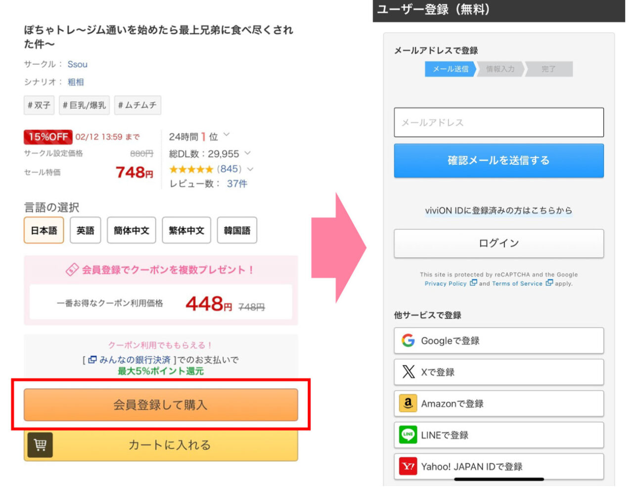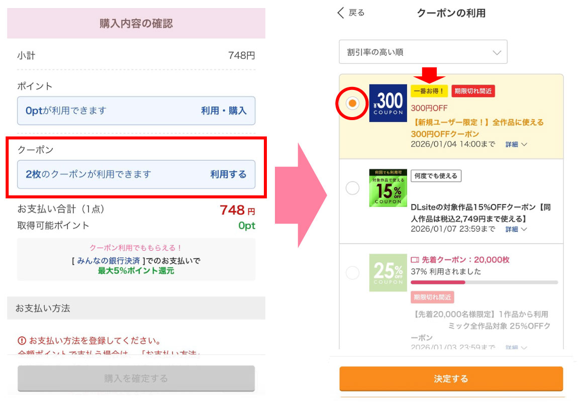 - DLsiteに無料登録して【300円OFFクーポン】ゲット