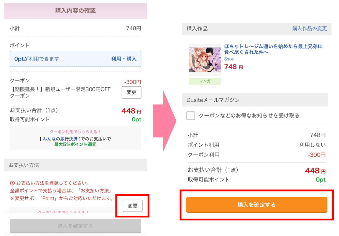 最後に【300円OFFクーポン】がきちんと適用されているかを確認して、購入を確定します。