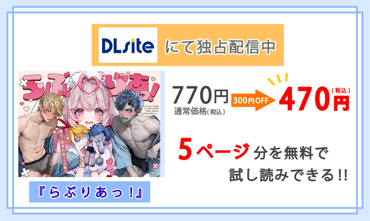 ちなみにマンガ『らぶりあっ!~もしも君が僕らと感覚共有する人形を弄んだら~』はDLsiteで、いまなら以下の価格で配信されています。