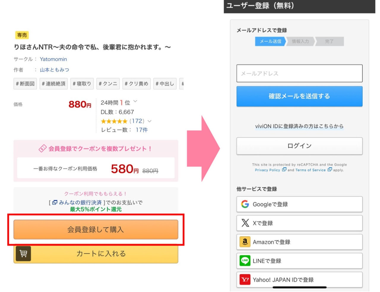 本ページのリンクボタンを押して漫画『りほさんNTR~夫の命令で私、後輩君に抱かれます。~』購入ページにアクセスし、DLsite無料登録します。