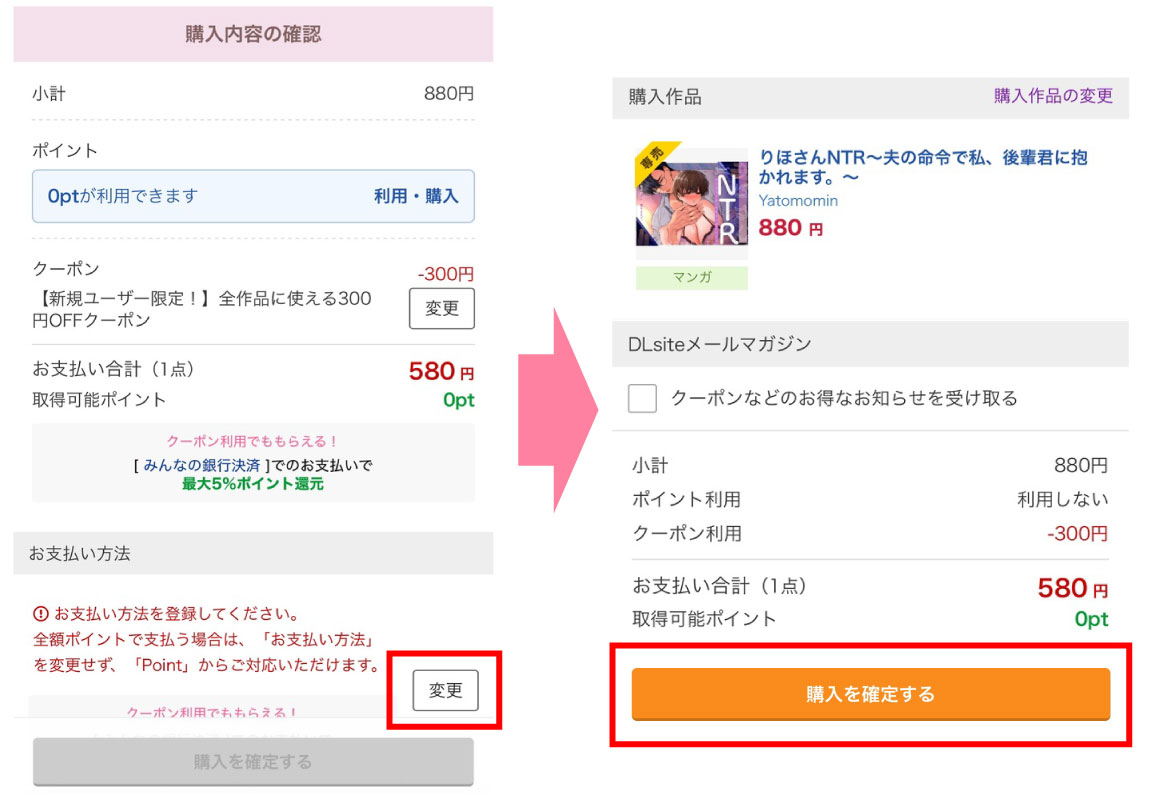 最後に【300円OFFクーポン】がきちんと適用されているかを確認して、購入を確定します。