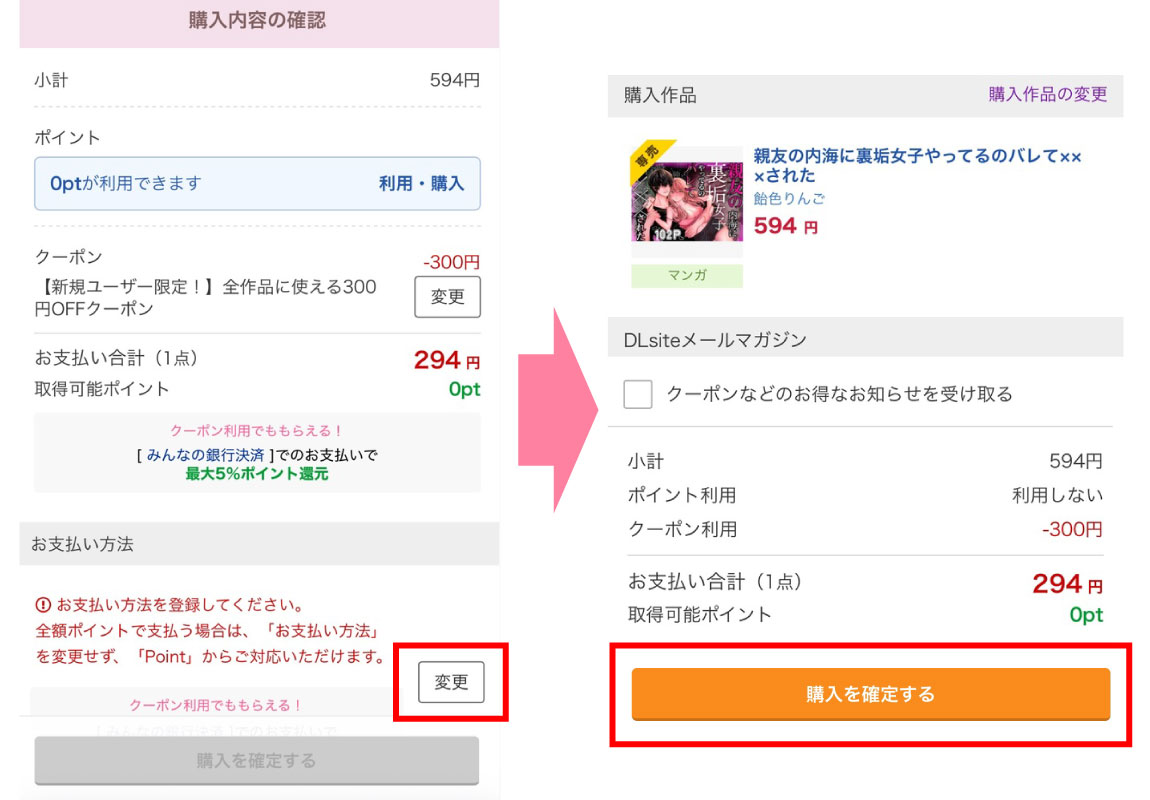 最後に【300円OFFクーポン】がきちんと適用されているかを確認して、購入を確定します。