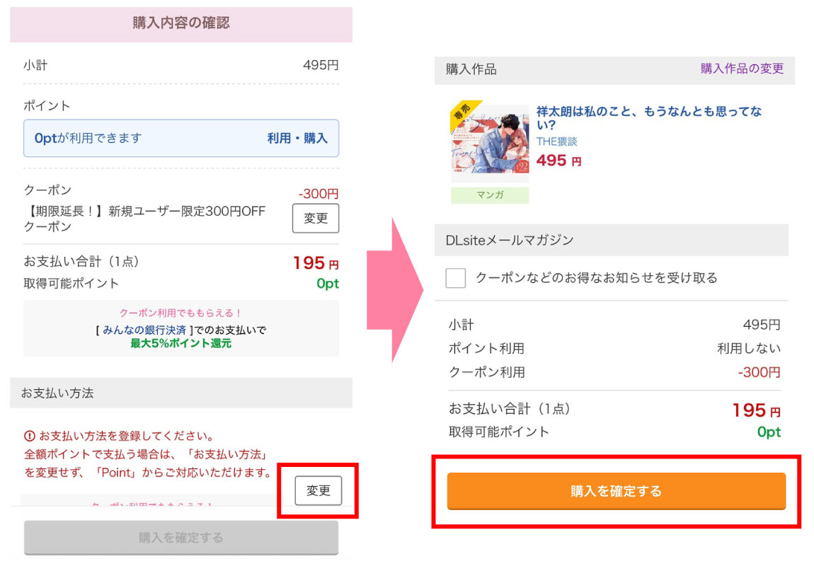 - 支払い方法を登録して購入確定する
