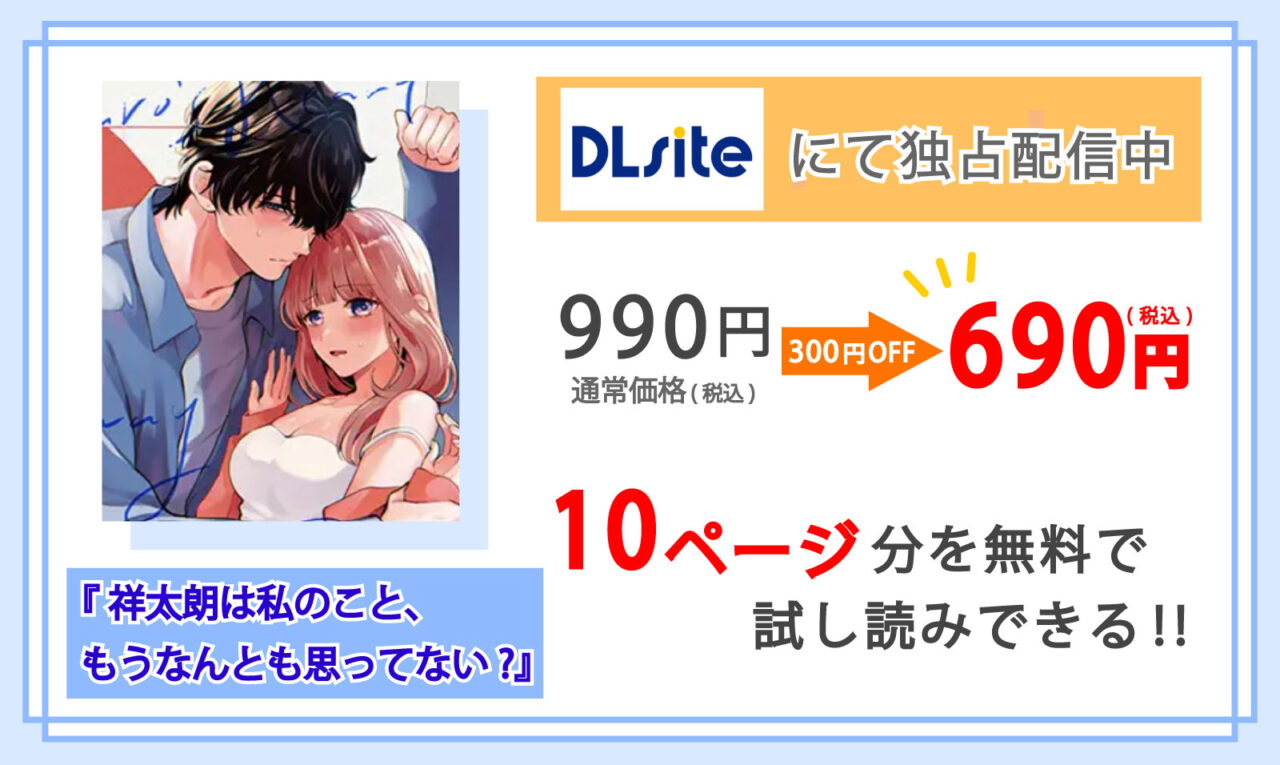 ちなみにマンガ『祥太朗は私のこと、もうなんとも思ってない?』はDLsiteで、いまなら期間限定(2025/11/27まで)で50%OFF!!以下の価格で購入することができます。