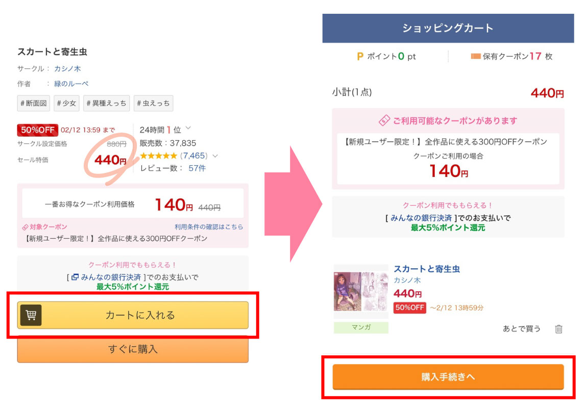 漫画「スカートと寄生虫」をDLsiteでお得に購入する方法