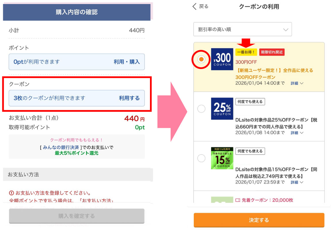 - DLsiteに無料登録して【300円OFFクーポン】ゲット