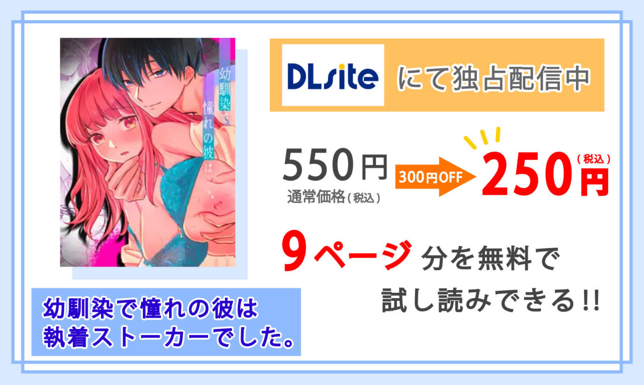 ちなみにマンガ『【睡眠開発】幼馴染で憧れの彼は執着ストーカーでした。』はDLsiteで、いまなら期間限定(2026/02/12まで)で50%OFF!!以下の価格で購入することができます。