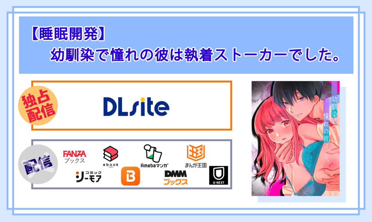 比較してみた結果、マンガ『【睡眠開発】幼馴染で憧れの彼は執着ストーカーでした。』の電子書籍は、「国内最大級の二次元総合ダウンロードショップ」であるDLsiteでしか配信されていないことが分かりました♪