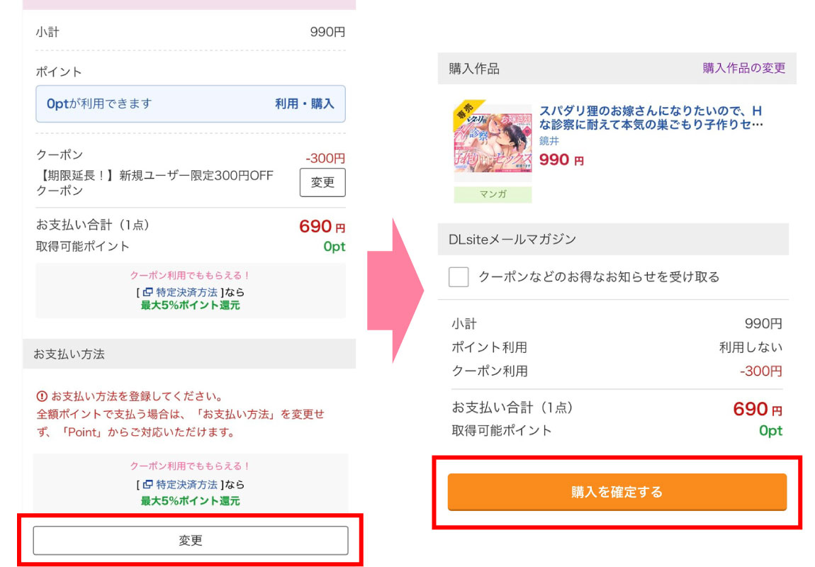 - 支払い方法を登録して購入確定する