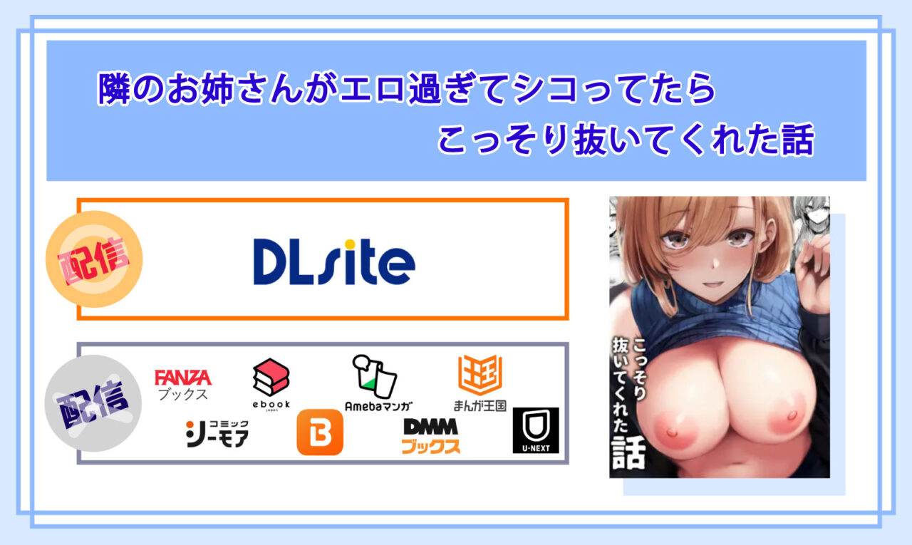 比較してみた結果、マンガ『隣のお姉さんがエロ過ぎてシコってたらこっそり抜いてくれた話』は、「国内最大級の二次元総合ダウンロードショップ」であるDLsiteが一番お得であることが分かりました♪