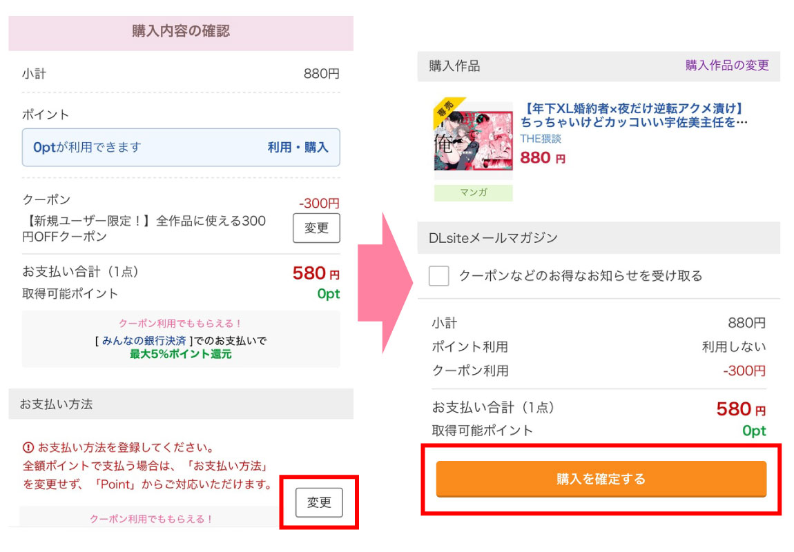 - 支払い方法を登録して購入確定する