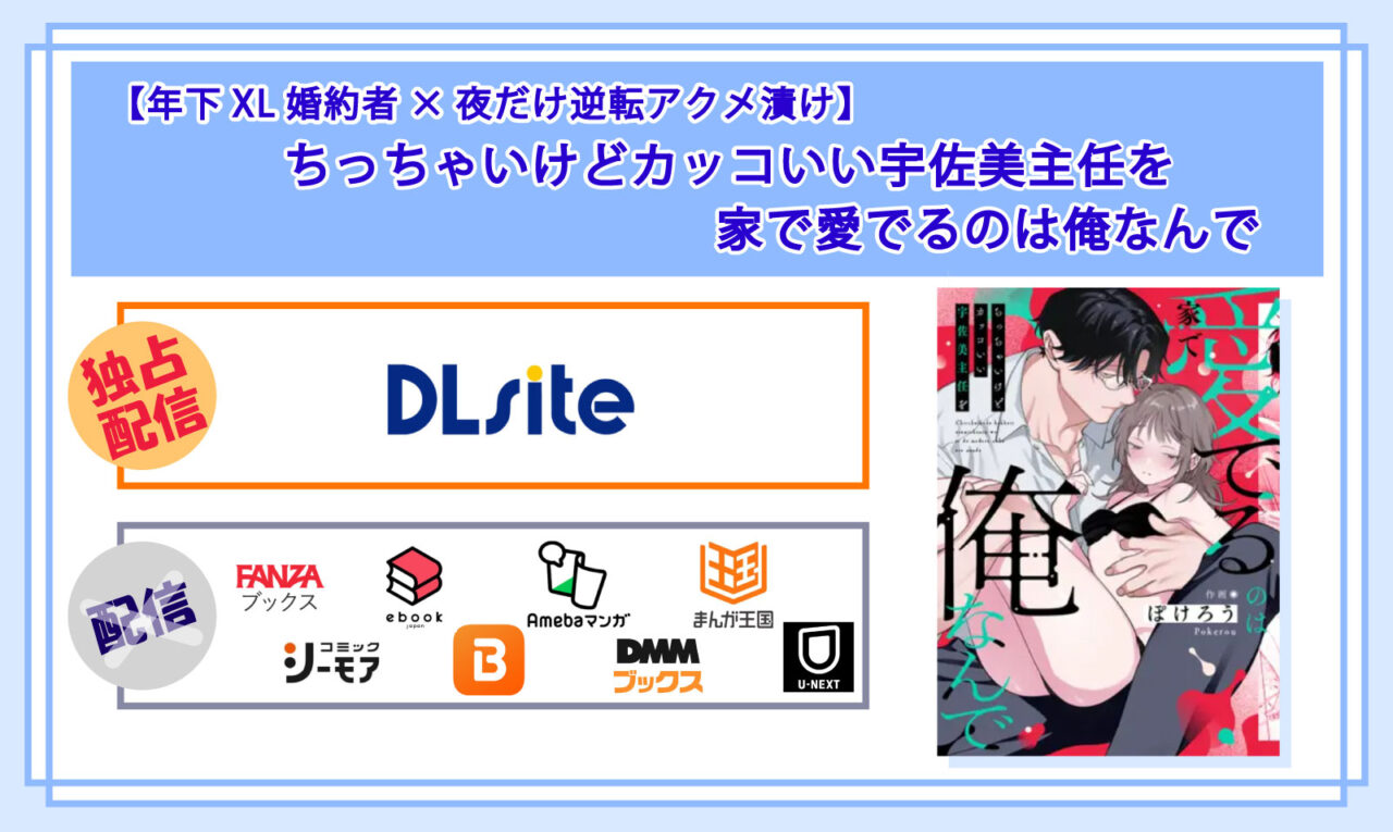 比較してみた結果、マンガ『【年下XL婚約者×夜だけ逆転アクメ漬け】ちっちゃいけどカッコいい宇佐美主任を家で愛でるのは俺なんで』の電子書籍は、「国内最大級の二次元総合ダウンロードショップ」であるDLsiteでしか配信されていないことが分かりました♪