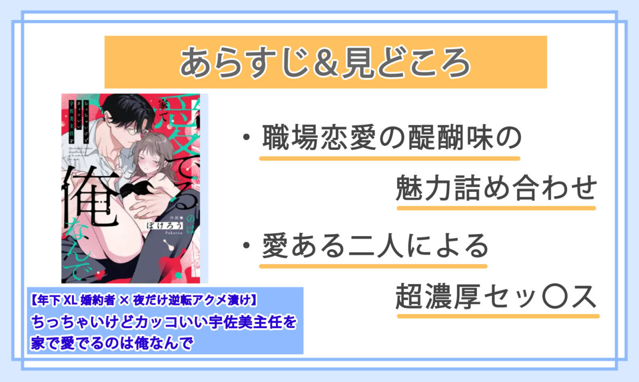 漫画「【年下XL婚約者×夜だけ逆転アクメ漬け】ちっちゃいけどカッコいい宇佐美主任を家で愛でるのは俺なんで」あらすじ・見どころ・感想