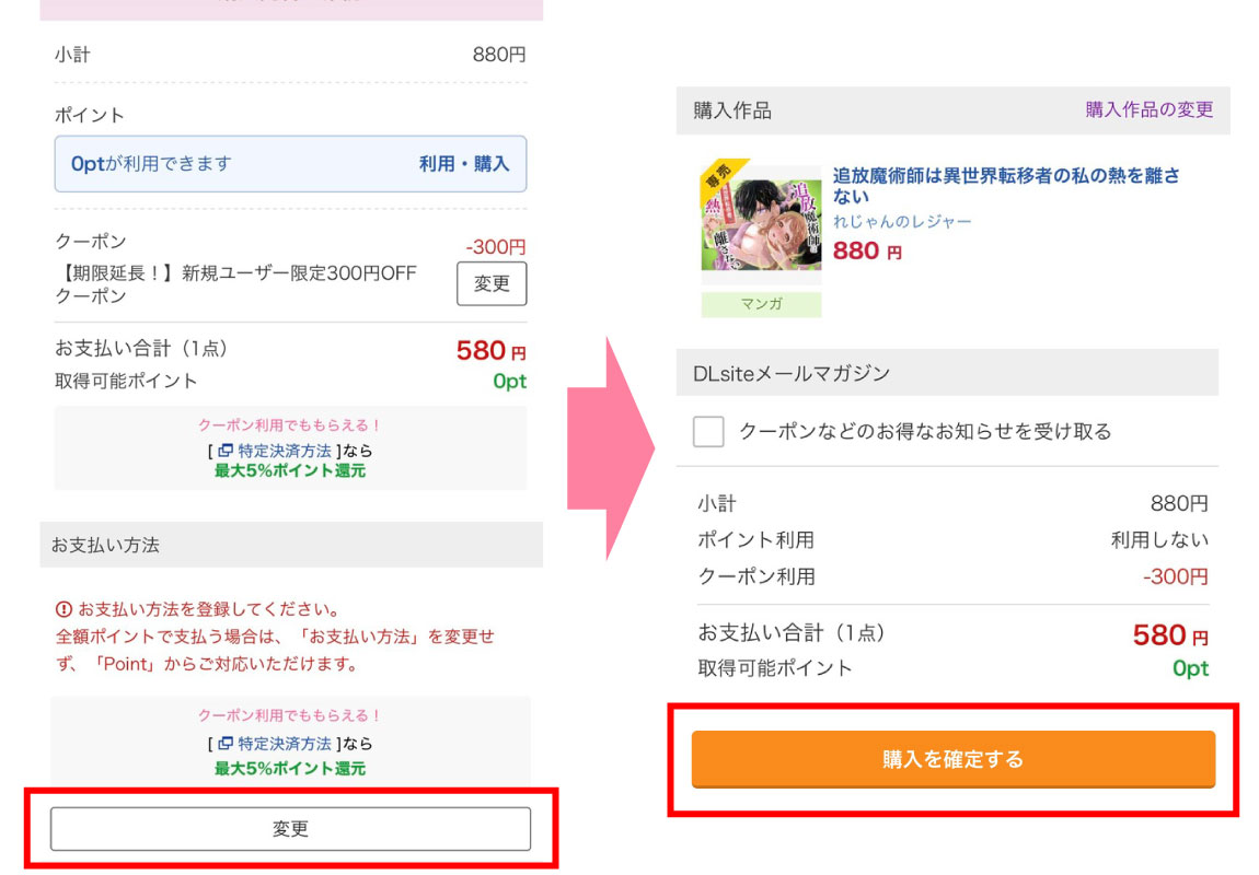 最後に【300円OFFクーポン】がきちんと適用されているかを確認して、購入を確定します。